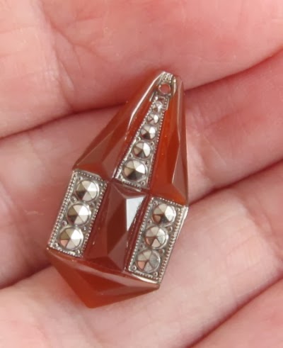 The second necklace features the vintage glass pendant together with carnelian beads and faceted vintage glass rondelles. I added a Sterling chain which I oxidized to match the tone of the pendant.